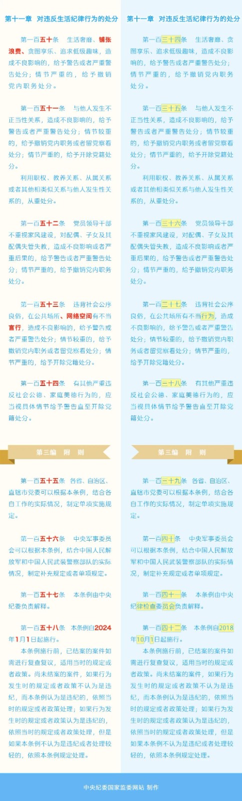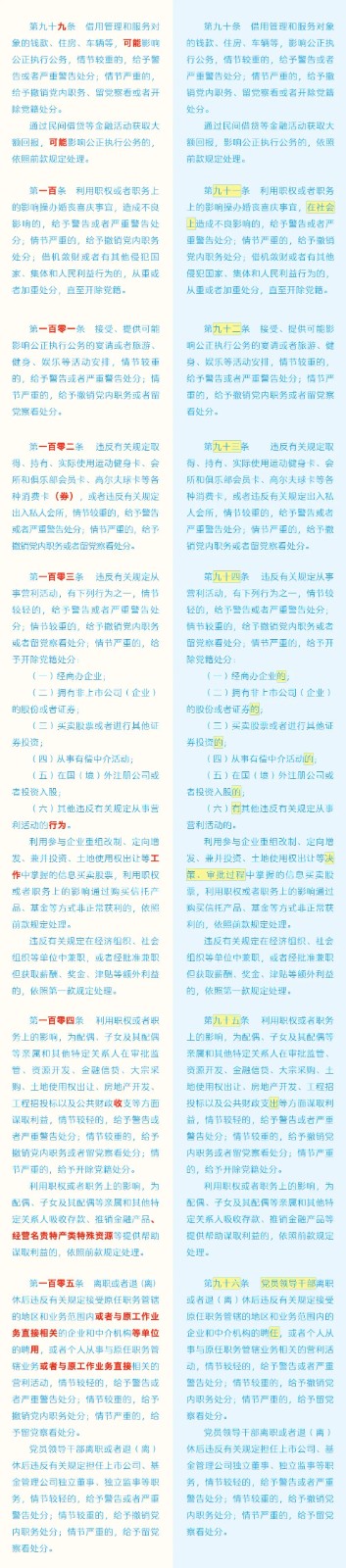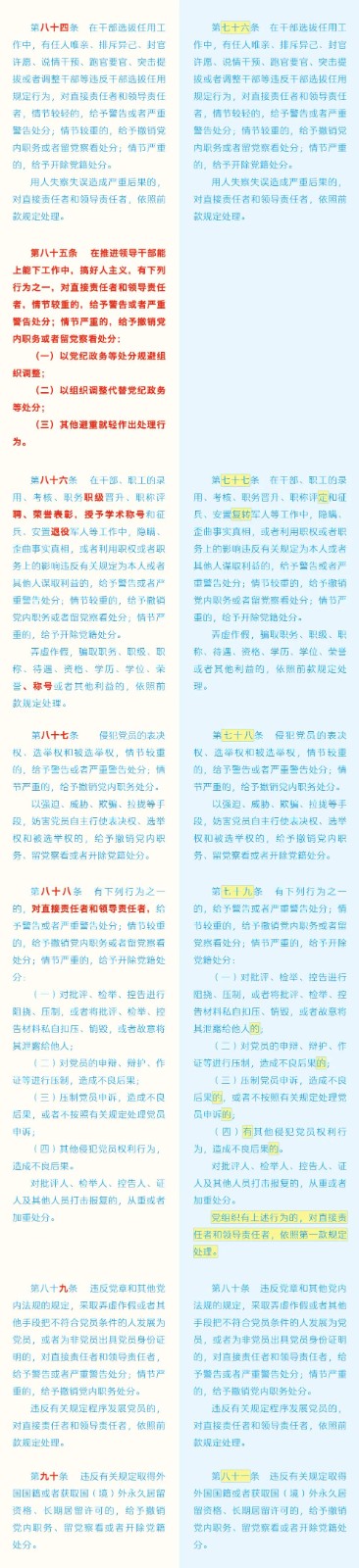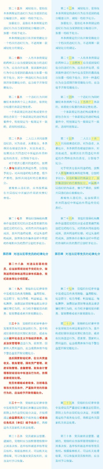 《中國共產(chǎn)黨紀律處分條例》修訂條文對照表